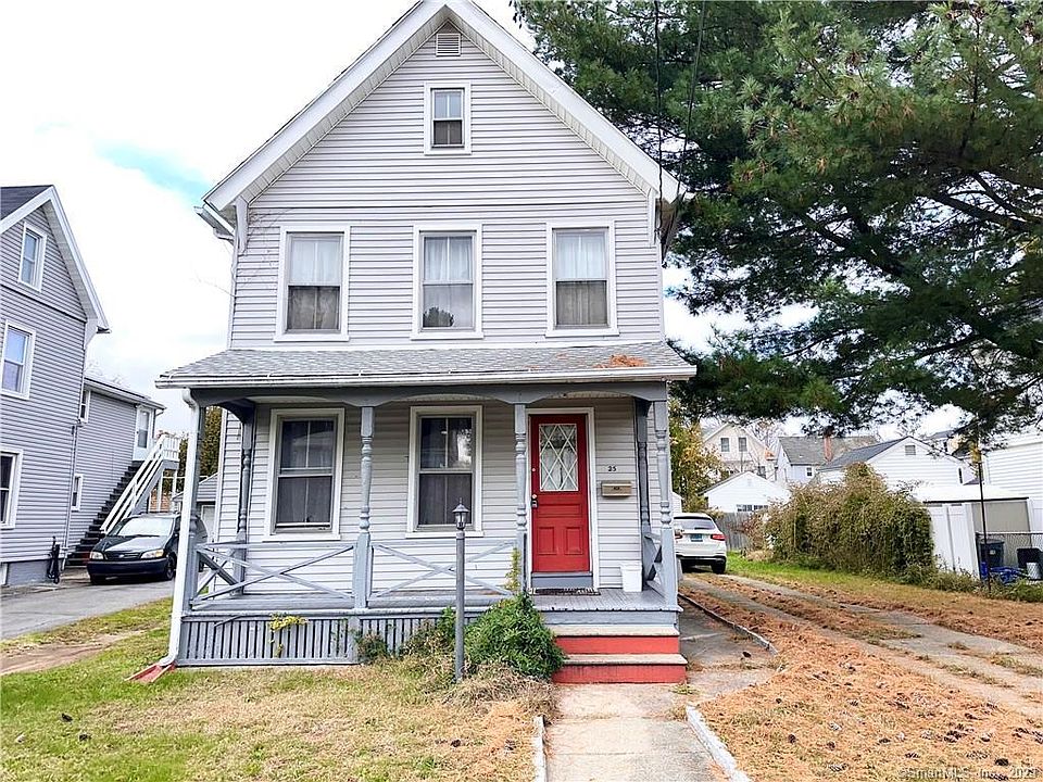 Spacious 3 bedroom and 1.5 baths Colonial Style home with a long driveway and detached garage; main level features a living room, half bath, 1st bedroom, and an eat-in kitchen with plenty of cabinet space; upper level features 2 additional bedrooms with ample closet space, a full bath with huge linen closet, and a well-insulated walk-up attic with more potential living space; full basement with washer and dryer hookup and separate walkout; large and private backyard with a long concrete driveway, garden area, and detached garage; brand new furnace; hard wood flooring in lower level and ceramic tile in kitchen and baths; house in need of some minor TLC-priced to sell!