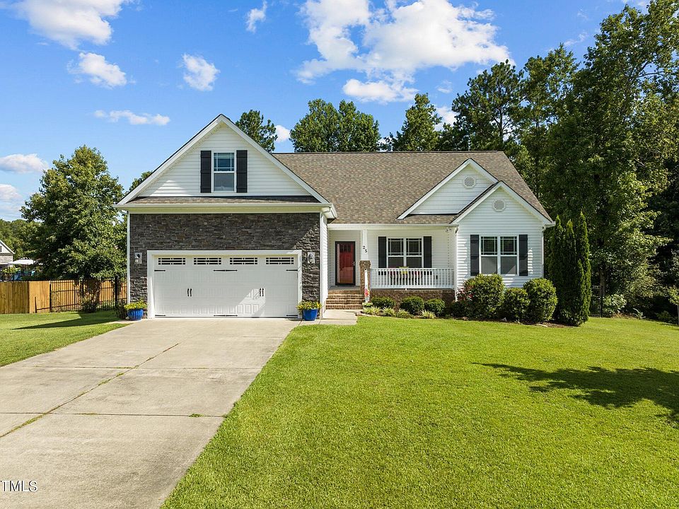 Home sweet home is calling! This beautifully maintained property checks every box! Spacious master suite with dual vanity, separate shower & soaking tub, large walk-in closet, and a private entry to the screened porch. Living room features vaulted ceilings and effortlessly flows into the kitchen area where you'll find plenty of cabinet space, gorgeous granite countertops & stainless steel appliances! Both secondary bedrooms are also on the main level of the home PLUS a massive bonus space upstairs that would be perfect for an office, playroom, workout area, or theatre! The flat backyard is fenced and has a patio & firepit that are calling for summer cookouts! No HOA and less than 20 minutes to downtown Wake Forest!
