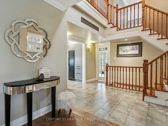Welcome to 25 Waltham Drive in the desirable Thistletown/Beaumonde Heights neighborhood of Etobicoke. This exquisite 2,500 sq ft home is set on a spacious ravine lot and offers 4 bedrooms, 2.5 bathrooms, and a fully finished walkout basement suite. The grand entrance boasts 18-ft ceilings and a custom staircase. The main floor features new hardwood floors, a built-in butlers pantry, and a stunning kitchen with custom cabinetry, quartz countertops, and pot lights, flowing into a bright breakfast nook and a spacious deck overlooking the ravine. Upstairs, enjoy a family room with 12-ft ceilings, hardwood floors, and crown molding. The primary bedroom offers a luxurious ensuite with a double vanity, custom glass shower, and jacuzzi tub, plus a cedar-lined walk-in closet. Three additional bedrooms share a well-appointed bathroom. The basement suite includes a private 1-bedroom unit with a 3-piece bath, separate laundry, and storage. The backyard is a private retreat with well-maintained gardens, mature trees, an above-ground pool, and a custom three-tiered shed. Located near parks, schools, Humber River trails, Humber College, and just 20 minutes to Vaughan City Center, with the Finch LRT nearby for added convenience.