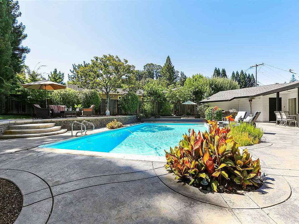 Tucked in at the end of a prime Burton Valley cul-de-sac, this beautiful, single level ranch style home is on a private .26 acre "pie" shaped lot & features a resort style yard with no rear neighbors. Mature landscaping. Easy entertaining with a sparkling pool, custom stamped concrete hardscape, built-in BBQ, fenced veggie garden, fruit tree, lawn area and cozy outdoor fire pit. Spacious living room, dining room and separate family room. Huge pantry/laundry room. Custom shutters over dual pane windows. Hardwood floors. Great indoor/outdoor flow throughout the home brings the picturesque views in from every window. Built-in storage and extra space in 2 car garage with interior access. 1 block from Burton Valley Elementary School and Rancho Colorados Swim & Tennis Club. Award winning public schools. Minutes to downtown, BART, Lafayette/Moraga Trail and more!