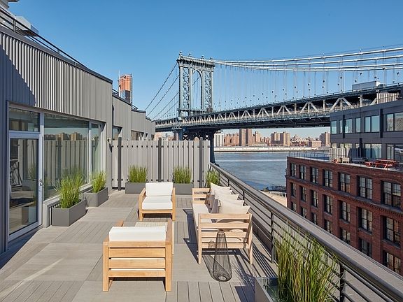 Private terrace over-looking iconic downtown Manhattan and Washington Street in Dumbo! Loft-style, spacious 2 bedroom 2 bath home. Stainless steel appliance in an island kitchen leading into a 25 foot living room, ideal for entertaining! Split bedrooms have generous custom built in closets. In unit washer/dryer. Occupied Home, 24 hours Notice Required to Show. Gair 2 is a century-old building--and a statement-making address. Its meticulously preserved brick faade is matched by a luxurious interior design aesthetic. Custom Italian kitchens, stone countertops and exposed wood beams come standard. In historic DUMBO, near Brooklyn Bridge Park, Gair 2 is an urban escape. The stress-melting 2,500-square-foot rooftop lounge deck features one of the most breathtaking views of all New York: the Brooklyn Bridge, Manhattan Bridge and the lower Manhattan skyline. Photos May Be Of A Representative Unit. * Listed rent is net effective rent, based on a gross rent of $6595.00 and 1 Month Free