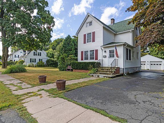 Welcome to this spacious 3-bedroom, 1 full 2 half bath home that perfectly blends comfort, character, and potential. Tucked near the end of a quiet cul-de-sac, the property offers both privacy and convenience-just minutes to schools, shops, restaurants, golf courses, hiking trails, farmstands, and more. The exterior features a generous backyard and a detached two-car garage. Step inside and you'll be greeted by a sun-filled living room showcasing a cozy fireplace, built-ins, wide-plank hardwood floors, and a charming stained-glass window. From here, flow easily into the dining room and kitchen, which also connects to the partially finished basement with a half bath. A secondary entrance at the rear of the home leads to an additional half bath and a versatile room-perfect for an office, studio, home gym, or workshop. Upstairs, you'll find three generously sized bedrooms with beautiful hardwood floors and a full bath. One of the bedrooms also provides access to a walk-up attic with new windows, offering abundant extra space and endless possibilities for customization. This home has so much to offer-schedule your private showing today before it's gone!
