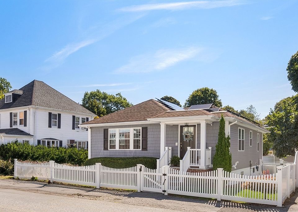 Full gut renovated 2 bed, 2 bath single family feels like new construction in a quiet neighborhood, within close proximity to The Fells Reservation with 2,200 acres of scenic hiking trails. Open concept living room with electric fireplace and dining area. Elegant kitchen with brand new exterior vented gas range, under cabinet lighting and a farmer’s sink overlooks fully fenced back yard with rear deck, patio and professional landscaping. 2 sizable bedrooms with double hanging closets. Main bathroom boasts double sinks and tiled shower with tub. Hardwood floors, Harvey windows with shades and dimmer switches throughout. Finished, walk-out lower level with wood grain ceramic tile flooring family room, full bathroom, home gym/laundry room with sink and generous storage space. Gas Heat and Central Air throughout. Enjoy the financial benefit of owned solar panels. Off street parking for 2+ cars. Easily commute to Boston or NH using I-93.