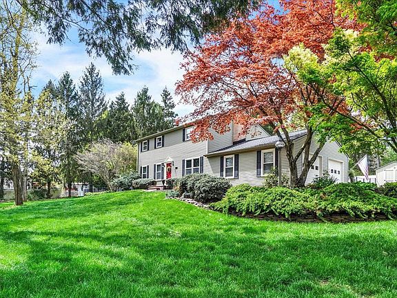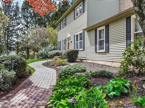 Picturesque home on nearly an acre lot with an in-ground pool! Walking through the front door, you are greeted with a fantastic layout and incredible updates! The living room is spacious and full of natural light while the dining room is large enough to accommodate family gatherings of all sizes. The tongue and groove ceiling, candle chandeliers, and brick tile flooring elevate this space to make it feel warm and modern. The kitchen is a blend of function and beauty with features like granite countertops, a tiled backsplash, sleek black appliances, center island, deep kitchen sink, and glass front accent cabinets. Enjoy lovely views of the yard from the custom herb/garden window or from the full light doors to the patio. The mud room has been designed to make every inch functional: the pantry is tucked away yet accessible, there are two dog crates built into the cabinetry, and there are hooks, shelves and a life-edge wood bench creating a designated spot to drop coats, bags, shoes! Working from home? The office is ready for you with a gas fireplace and a built-in bookshelf. The primary suite easily accommodates even a king-sized bed, the walk-in closet is generous, and the attached full bath comes equipped with a tiled shower. 3 more bedrooms are also on the 2nd floor, each with lots of natural light and ample closet space. Looking for more space? Head down to the family room to enjoy almost 500 more finished sqft and a workshop! Lastly, step outside to experience outdoor living at its finest. Exceptional space complete with multiple patios, brick walkways, and a lush lawn. Your summers will be spent in the 44x20 in-ground pool with new liner (2023)! The pool equipment is housed in a special shed making maintenance a breeze. An additional shed is oversized and ready to fit your lawn equipment, tools, toys, and more. Custom landscaping lighting is not only functional, but also creates a beautiful backdrop all 4 seasons of the year. The yard is fully fenced and surrounded by mature trees providing privacy. More highlights of this home include 1st floor laundry, a side entry 2 car garage, and even a new roof (2023)!