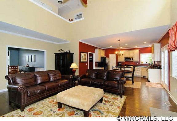 Check out this move in ready home in a fantastic location! Just minutes from Biltmore Park, the Asheville Airport and a plethera of dining and shopping choices. This updated home features high ceilings, a soaring 2-story fireplace, lots of natural light, open floor plan, beautiful Oak wood floors, large master suite with soaking tub, generous shower and a large walk-in closet. Relax on the covered stone front porch or have your morning coffee on the screened and covered back deck, while enjoying the beautifully landscaped back yard. Recent upgrades include: new gutter guards, gas water heater, stainless kitchen appliances (refrigerator has 2 ice makers), under counter lighting and Hickory hardwood floors in the master bedroom. Use of the Waightstill Mountain pool and clubhouse included. Homes in this sought after neighborhood don't last long. Schedule your showing today!