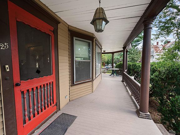 Turn of the century Colonial with beautiful woodwork and custom windows from back in the day. This is a large home that was a parsonage and had two families living comfortably. It has two separate entrances for many possibilities. The first floor features an eat-in kitchen, pantry/laundry, dining room, family room/bedroom with a half bath, living room and a three quarter bath. Upstairs boasts three bedrooms, an office/den area and full bath. The second floor also includes a landing area at the top of the second entrance steps with older kitchen cabinets that possibly could be transformed back to an apartment with the right permits and set up. A large attic was finished at one time that would need some work as the wiring was updated in this home. There are two parcels included as the two car carport is on the additional lot across the street on Walnut Street with easy access and crossing to the home.