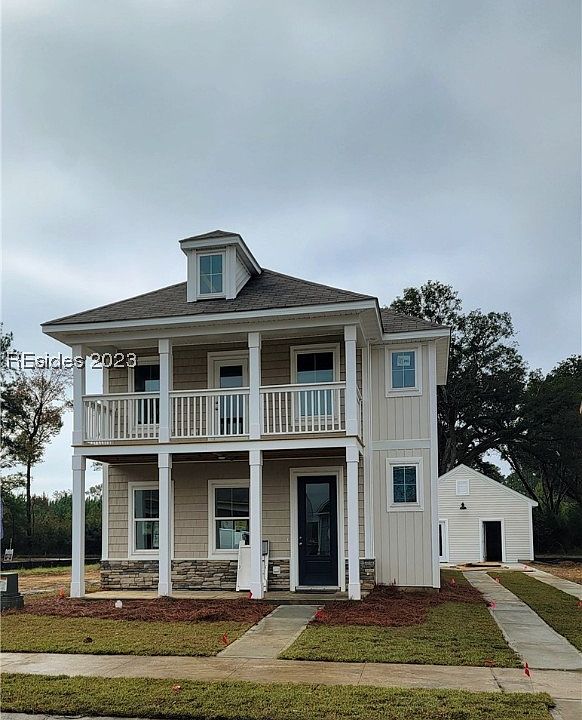 The crown jewel of the River Oaks lineup, the Ashwood features an open plan with a large island great for tasks, making cookies, entertaining, homework, you name it! Lots of cabinet space, pantry, and window over the sink. First-floor primary and laundry, additional storage & three more bedrooms with 2 full baths upstairs with balcony! Large front porch and upper balcony to enjoy the LC weather. A tranquil retreat from the hustle and bustle of everyday life at quaint River Oaks, superbly located, just 20 mins from Beaufort, Old Town, and 30 mins to Savannah and HHI. Tons of upgrades! 2 car garage. Photos are of previous model.