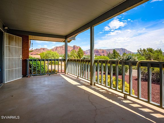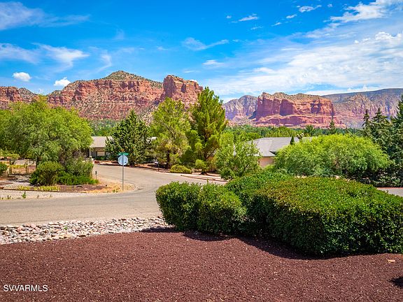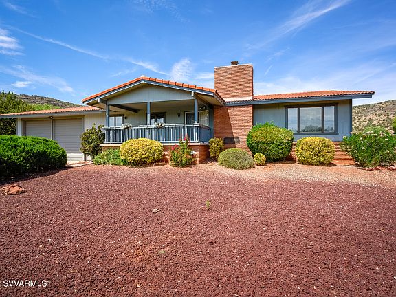 Single level Sedona home is sited on an oversized corner lot with commanding views of the surrounding red rocks. This A+lot offers views from every angle and was one of the first lots built upon when there were endless choices of vacant lots. Single level design is an early great room concept with large rooms and common area with direct views of the surrounding red rocks. Huge bonus for this property is the massive 4-6 car attached garage that can easily house two Class A RVs. Potential for conversion to additional living space or attached guest quarters or in-law apartment for the right buyer.