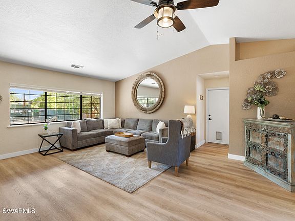Live your Best Life in this single level 4bed 2bath Sedona home with NO HOA!! Located just moments away from hiking, dining, shopping, grocery and three golf courses. Kitchen has Black Galaxy granite counters, living area has ultra durable vinyl plank flooring, vaulted ceiling and wood burning fireplace. French doors lead out from master and dining/bonus room onto patio for plenty of fresh Sedona air. Yard has weed barrier for low maintenance, and a shed for your extra stuff! A two car garage to keep your cars cool rounds out this Sedona ranch style home. Welcome Home!