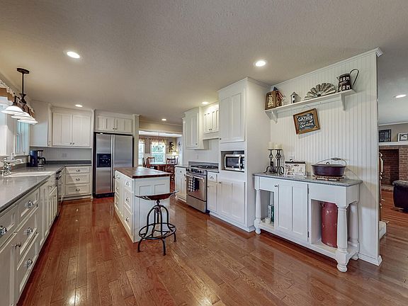 - Kitchen: Microwave, Range, Refrig, Dishwasher, Disposal, Gas, Pantry, Kitchen has Island