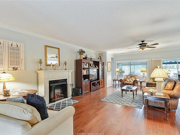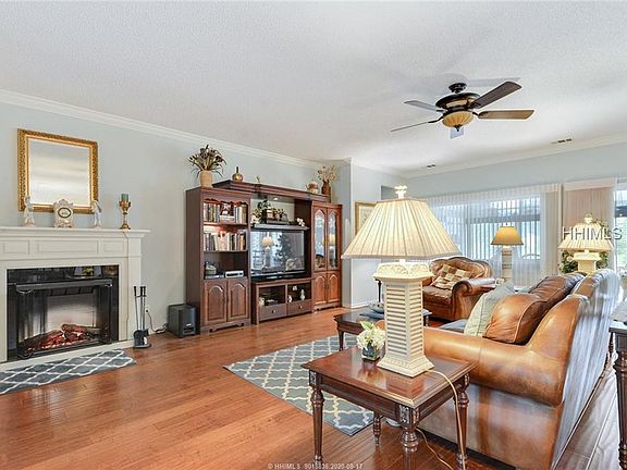 Wisteria Model move in ready. Located on extra wide lot & a lagoon changes the flow of water twice a day. Save money Beaufort County property tax $1,415. 3 Bedrms/large den/2 baths. Eat in kitchen Corian counters, white cabinets, updated SS appl. tiled backsplash. New HVAC & roof in 2016. Heated & Cooled 4 seasons 21x16 room. Guest bedroom is a large king size 12x16 room. Bay window in kitchen & owner's suite. Wood floors in hall, dining area, kitchen, great room & owner's suite. Carpet in guest bedrooms & den. Interior paint 2015. Exterior paint 2016. Solar tube in dining area, tech shield, attic stairs, crown molding & plantation shutters.
