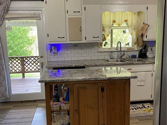 You don’t want to miss this beautifully updated ranch home with full finished walkout basement. Sitting on 1.077 acre. Kitchen has gorgeous granite countertops, kitchen island, newer appliances including 2 ovens. You will enjoy three bedrooms and two full baths in this home. Downstairs includes a family room prepped for a wood burning stove, a second kitchen, an office and a full bath. Definitely potential for fourth bedroom. Newer floors throughout with hardwoods as well. Central AC/gas furnace. Outside you will enjoy a large fenced in yard, front and rear covered porches, large chicken coup with extra storage. Metal roof is approximately 11 years old.