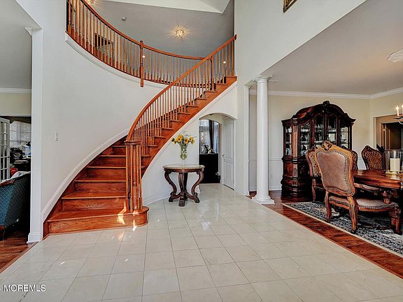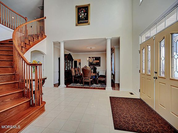 Looking for Elegance, Luxury and the warmth of a Family Home! This 4 bed 2.5 bath home is situated on 1.03 acres, is fenced in and backs to woods in the very desired ''The Reserve'' in Jackson NJ. Let's start with your stunning Grand Entranceway with it's Bridal Staircase, marble flooring and 2 story ceiling and beautiful chandelier (this truly makes a statement). To your left is your formal living rm/sitting rm with French doors leading to your Bonus Rm/Office. To your right is your large Dining rm with Decorative Colum's & Decorative Molding which holds plenty of room for your formal dining entertaining. From your lovely foyer step straight forward through your archway into the breathtaking Great Room with hardwood floors, 2 story Arched Windows and Fireplace w/Mantel that complete this Grand Center Room. Off your Great Room is your Gourmet Kitchen a Chef would be excited to plan a meal in. With 42" Cabinets, rec lights, eat in Kitchen with Granite Counter Tops with decorative backsplash, butlers pantry and Stainless Steel Appliances...they will ask you for the recipes now. Invite the friends and family to sit at the island while whipping up the evenings delights.