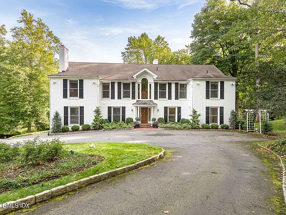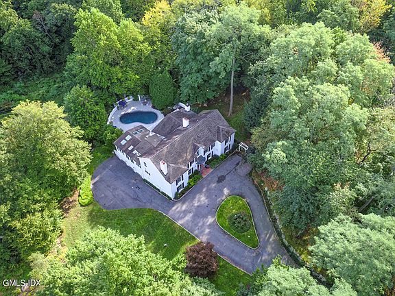 Incredible opportunity to make this prime mid-country location home your own! Sited on one of the most beautiful streets, this classic home is set back on 2 tranquil acres, at the end of a tree-lined cul-de-sac overlooking Horseneck Brook. Dramatic entrance leads to extra height family room, formal dining room, granite-clad kitchen, spectacular office with custom built-ins & fireplace & first floor en-suite bedroom. Wonderful entertaining deck overlooks pool. The second level has very spacious primary bedroom with 2 en-suite baths & multi walk-in closets, plus two add'l bedrooms, hall bath & laundry. Square footage does not include the ~500 sf finished lower level. 3-car garage. Town gas and water. Off lower Lake Ave, minutes to downtown Greenwich.