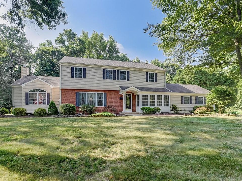 This lovely Center Hall Colonial has been Expanded, Updated and Renovated! Kitchen and the Breakfast area has been expanded with a celestial window, Granite Center Island and extra counter space along the wall. Double door leads into the Living Room. The Dining Room is also expanded with a Wall of Windows, Columns and Coffered Ceiling. Family Room is expanded from front to back with High Ceiling, Gas Fireplace and Sunburst Windows. Upstairs has hardwood floor under Carpet. A Recreation Room has everything you need for entertaining including a beautiful Built in Wet Bar that opens out onto the enclosed porch. 18x26 Deck with Tiki Bar. An extra wide driveway is lined with Belgian Block. Well water for irrigation.