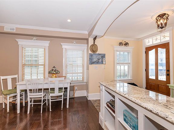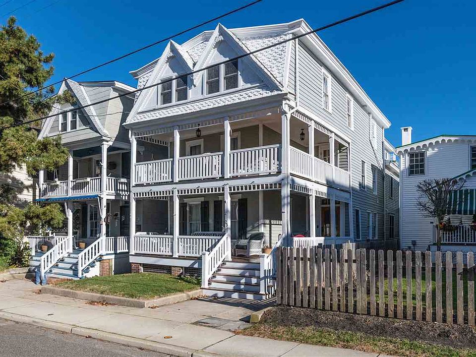 Steps to the beach.. this 8 bedroom 5 and a half bathroom home offers plenty of space for those Cape May memories. Features are 2 porches out front with great ocean views, small rear porch, outside shower, grill and dining in the back yard. Great storage shed completes the quaint area. Inside has lots of charm with plenty of updates. This house has been totally reconstructed from top to bottom with new plumbing, new electric, all new drywall, closed cell insulation in all walls crawl space, ceilings under roof. All the interior walls have sound board and insulation. The first floor offers 2 living rooms with a beautiful custom with built in wall unit open to the large kitchen with a large island, dining nook, custom tile feature above the gas range, granite counter tops, stainless appliances, double farm house sink, walk in pantry, two refrigerators, and heated floors in the kitchen. A walk-in pantry is also offered off the kitchen. The second and third floors offer the spacious bedrooms and baths all updated with custom tiled showers and heated floors. The second floor front porch has a view of the ocean. Shown by appoint. Being sold furnished .