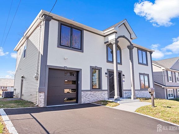Welcome to this stunning newly constructed custom-built 5-bedroom, 4-bath home, situated on a spacious lot with a generous backyard. Built on a combination of new and existing slab, this home features expansive 9 ft. high ceilings on both floors and high-quality Pella brand windows, enhancing the sense of space and natural light throughout. As you step through the grand entrance, you're greeted by a beautifully crafted staircase and intricate trim molding that radiates timeless elegance. The great room flows seamlessly into an open kitchen, complete with sleek quartz countertops and a stylish backsplash, making it perfect for entertaining and social gatherings. The first floor includes a versatile bedroom, ideal for guests or multi-generational living. Upstairs, the primary suite offers a luxurious retreat with ample closet space and modern amenities. You'll also find a Princess Suite and two additional spacious bedrooms, all featuring hardwood floors throughout. This home is equipped with two-zone heating and cooling for year-round comfort. The outdoor area boasts a beautifully designed paver patio, ideal for relaxation or entertaining guests. Conveniently located just a 5-minute drive from the Edison Train Station and near shopping centers