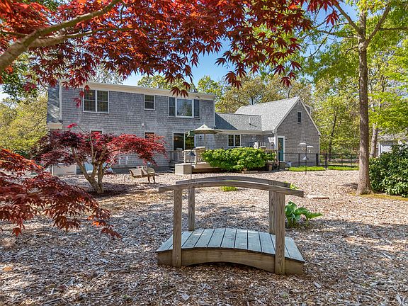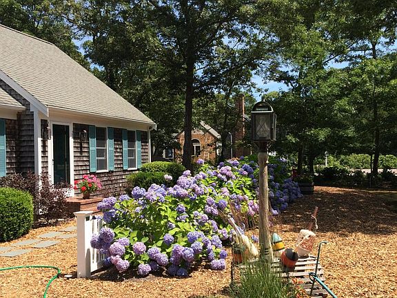 This is a wonderfully landscaped and well maintained 4 bedroom, 2 bath Cape home, on a half acre on a delightful cul-de-sac, on one of the most desired streets in Eastham and just a short distance to Thumpertown Beach. We have an open kitchen/living/dining area, with vaulted ceilings and skylights, with a JOTUL gas fireplace and opening on to a large deck overlooking a low-maintenance and landscaped back yard. The kitchen has granite countertops and a cathedral ceiling. Also downstairs are 2 bedrooms, and a full bathroom. Upstairs is an open loft area, 2 more bedrooms, and another full bath. Back downstairs, we enter this immaculate home through a farmers porch. To your left is a larger 2 car garage with a huge walk-up unfinished (and dormered) room above. Also, a full basement, natural gas heat, updated bathrooms, central AC, gas backup generator, new (2019) roof, an outdoor shower, and a protected fenced-in area for your dog. This house is surrounded by magnificent year-round color - rhodies, hydrangeas, etc. Dream Here!