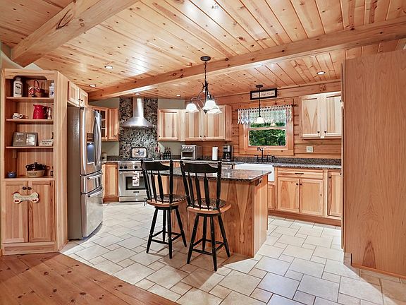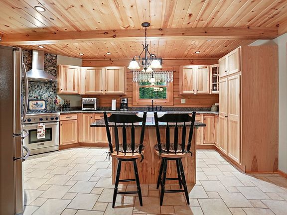 Nestled on a beautifully landscaped private wooded lot in historic Wolfeboro, affectionally referred to as “America’s Oldest Summer Resort” this quintessential log home is the epitome of warmth and coziness from room to room. The home is adorned with beautiful exposed beams, tongue & groove “D” shaped log walls, pine flooring, and radiant heat flooring. The first floor hosts the kitchen w/ granite counter top, Thermador professional range, SS appliances, farmer sink, & hickory wood cabinets. Adjacent is the laundry area and office space. Large dining room & living room with cathedral ceiling overlook the well-manicured back yard w/ above-ground pool. On this floor is the primary bedroom with in-suite bathroom and access to a screened-in 3-season porch. Upstairs is the cozy loft. The min-split A/C will keep the entire home cool. The lower level is home to the second bedroom, family room and play room; a full bathroom. Be at Lake Winnipesaukee in 5 minutes and 25 minutes to the slopes!