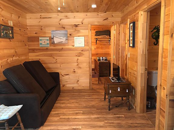 Adorable new construction three season cottage (easily expanded to year round) with sliding glass doors to deck, 2 bedrooms, expansive view of Penobscot Bay and accessible beach. Built on slab with frost wall and very well insulated. Association takes care of 8.25 common undivided land. Underground utilities. Summer rental history of $1700/week. Furniture included.