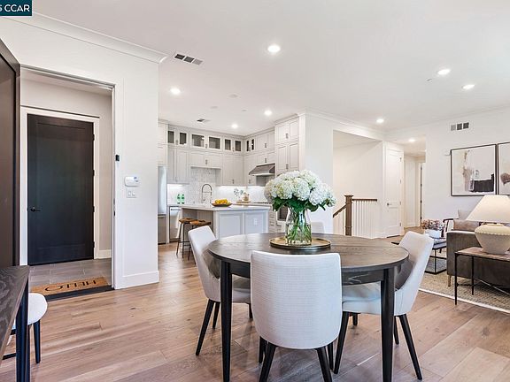 This 3-bedroom, 2.5 bath condominium is in Woodbury Highlands, Lafayette’s new prestige address. The property is only steps from Lafayette shopping and dining, but it offers relaxed natural surroundings as well, producing a perfect mix of city life and nature. The property is only 3 years old, by premier builder Davidon. One need only walk down the street to enjoy Lafayette’s fine dining and shopping. The floor plan features wide open spaces and exceptional elevated ceilings. The kitchen, featuring Thermador appliances, flows easily into the dining area. The primary bedroom (with an exceptional bath with an oversized tub, and a large walk-in closet) is on the entry level, which is the main living floor; the other bedrooms lie below, with another full bath and media room/office. A delightful patio sits adjacent. Parking and EV charging are easy in the 2-car garage, and an owned solar system keeps utility costs low. BART and Highway 24 are close at hand for quick access to the rest of the Bay Area.