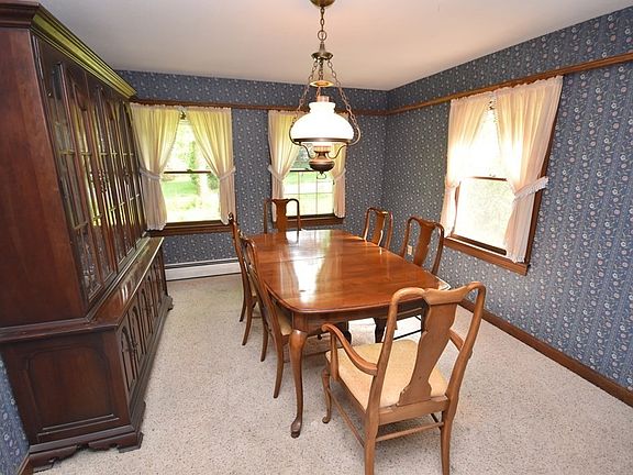 What a great find! Four bedroom Colonial on 2.63 Acres located in a neighborhood on a cul de sac off N Main St, easy access to Belchertown Center and major commuter routes. Come see the big open country kitchen with wood stove brick hearth, island work area plus a breakfast bar, dining area and oversized pantry; wide entry hall and another large open hall outside the 4 bedrooms, main bedroom with it's own bath, 2nd bath with double sink, raised panel doors throughout, convenient 1st floor office, living room with fireplace and built in bookcase, formal dining room for special occasions when you don't want to use the eating area and breakfast bar in the kitchen. But wait, there's more in the walkout basement! Family room with fireplace and more bookcases, workshop that everyone will envy, another half bath. Outside there is gazebo and patio, then a 16x23 foot workshop/shed with electricity and a loft. You can see how much it was enjoyed and now needs someone new to care for it again!
