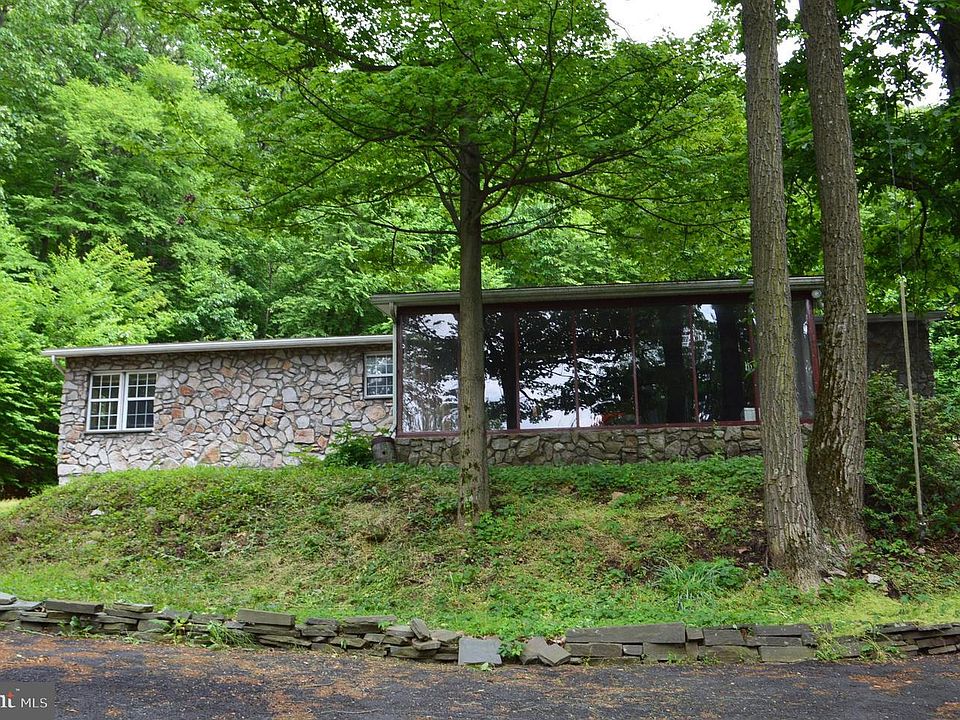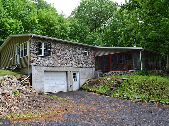Welcome to 25 Woodland Rd. This unique property is enhanced by the glass enclosed porch with with radiant floor heat, scenic views and a hot tub. From the porch you will enter a huge Living Room/Dining Room with cathedral ceilings and a Brick Gas Fireplace. Off the Livingroom is a Master Bedroom with it's own full bath that offers a soaking tub and separate shower. On to the kitchen which has 2 walls of cabinets and a breakfast room and laundry are. It also has an outside door to a small deck. The main level also contains a 2nd kitchen, a full bath and a Bedroom . This area has a separate entrance that could be an in law quarters or it could be opened up to provide the 2nd and 3rd bedroom for the main living area. There are also steps from the enclosed porch the lead to the basement that is partially finished with another Bedroom and a full bath. Finish your tour off in the 1 car garage and work shop. Not you average place. This one you have to see to appreciate.