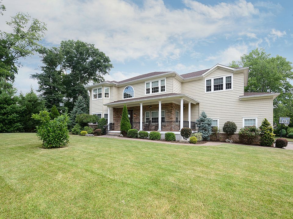 Drive down this picturesque tree lined street in Clark to the this gorgeous home on corner lot. No detail spared in this elegant & well built 4 bed 2.5 bath 4300 sq ft colonial. Enter from your wrap around wooden deck front porch into the bright and spacious double height foyer. Chefs kitchen includes granite counters, 42" cabinets, Kenmore SS appliances, range hood, and oversized island to wow your guests. Separate DR for family gatherings and double height floor to ceiling windows in living & family room. Separate study with double glass doors perfect for home office. Gas fireplaces in L/R & M/B. Up your winding stairs to 3 spacious bedrooms and grand master bedroom wing. Large walk-in closet and huge master bath with dbl vanity, glass walk in shower and soaking jetted tub. Enormous yard with concrete patio & beautiful landscaping surround home. Unfinished walk-out bsmt with high ceilings & endless possibilities. Pre-piped add'l bathroom in bsmt. 6 zone radiant floor heating, 2 zone A/C, security, sound, & irrigation systems in place. Move right in!