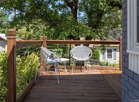 Beautifully updated contemporary home with great curb appeal in the heart of Walkable West Asheville on a quiet street with no thru traffic yet a short stroll to Sunny Point Cafe, West Asheville Yoga and all of Haywood Road's best shopping and dining. This one level home boasts a light filled efficient floor plan, exposed interior brick accents, skylights, crown molding and gorgeous hardwood floors. Features include a roomy chef's kitchen, stainless steel appliances, three main level bedrooms and a spacious deck. Bright living room with large skylights and a floor-to-ceiling, and a stone-surround gas fireplace with a live-edge wood mantel. Fully fenced backyard paradise with privacy fence, sunny stone+concrete patio, fire pit and established garden beds. Attached storage/tool shed perfect for garden tools and adventure toys. See brochure and video for details. Multiple offers received. Highest and best by Sunday, Sept 27th at 7pm.