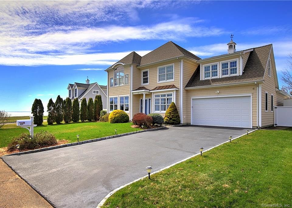 LORDSHIP! Magnificent Waterviews. Like new Colonial one home in from private beach. Open floor plan Great Room with nine foot ceilings gas fireplace and tall oversized windows with transoms overlooking Long Island Sound. Granite/Maple Kitchen with Island & Breakfast bar, double ovens and new gas 5-burner cook-top, refrigerator and overhead hood-exhaust fan. Custom cabinetry and pantry closet with pullouts. Formal Dining Room, laundry and remodeled half bath round out the 1st floor. Upstairs: Master Bedroom Suite with those fabulous water views, vaulted ceiling, full bath - separate shower and whirlpool tub and walk-n closet. Three additional bedrooms all with water views. Hardwood Floors throughout. Car lovers or hobbyists - The garage will hold up to four cars with overhead doors front and rear. There is a boat or RV pad alongside the garage with a 10 foot gate. Yard has an irrigation system and is level and fully fenced. Lordship is a three beach community. There is a private Lordship residence only beach within 100 yards of this home plus two town beaches. See addendum remarks for more on Lordship. Home does not require flood insurance.