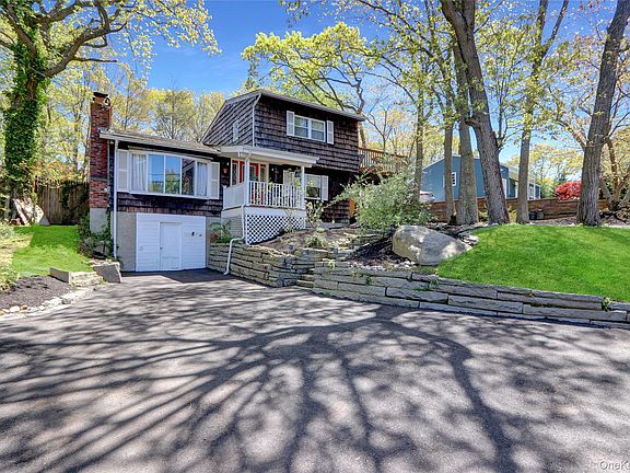 Warmth and comfort surround this Bohemian style 3 bedroom 2 bath home in Rocky Point just minutes to the beach. The home benefits from dual driveways that can hold 5 cars. Open the door to this beautiful open concept 1st floor with vaulted ceilings. Living room with a fireplace set into a rising brick wall, den/family room with a wall library, 1st floor bedroom, and full bath, huge eat-in kitchen with black stone countertops and updated appliances, laundry and pantry. Spiral staircase leads to a bedroom with a walk in closet, master bedroom and full bath. Both bedrooms lead to an expansive private upper deck. Fully fenced back yard with custom deck and large storage shed. Perfect for your summer barbecues!