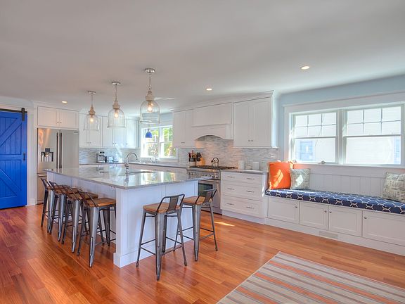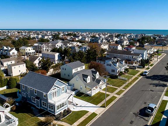 This modern Stone Harbor home exudes personality as you walk in the door; the sort-of place that feels like home before you move in. With spectacular attention to detail, materiality, color and light this 5 Bedroom 3 and a half Bath home will make for the cozy family beach home that you've always dreamed of. First you will notice striking exterior contrast with perfectly selected cool blue siding that juxtaposes the pure white accents and detail. Entering through the classic threshold you get a taste of beautifully designed modernity, craftsman style and elegance. The space introduces you to an amazingly lit open floor plan that utilizes strategic pillars and strong white wainscoting. Accents in the parti such as a blue barn door and meticulous crown molding fuse perfectly with strong expressions of design such as high end white kitchen cabinets and a warm seamless hardwood floor throughout. Design features include a beautiful daybed, centered living area, rustic wood mantle and a marble ensconced fireplace. The beautifully symmetrical and bright dining area and delicate light fixtures maximize space and is all framed by large double hung windows. Downstairs you have a nook with a wine bar, powder room, laundry room and a 1st floor full bedroom and bath with modern fixtures and high detail tile work. Moving up on the 2nd floor toward the private spaces you have 4 Bedrooms and 2 full baths, including a large master suite with vaulted ceilings, fireplace and a meticulously modern bathroom with large stand-up shower, modern fixtures and marble countertops. The private balcony separated with high end Anderson French doors is a full width fiberglass 2nd story deck with Beach and bay Views on a quiet Southern Stone Harbor street. Ideally situated toward the Southern end of town, you are within walking distance to pristine white sandy beaches as well as beautiful sunsets over the bayside with enough space to add a pool in the back yard. This coveted part of town is quiet and private while still remaining within walking distance to local dining, shopping and first-class entertainment.