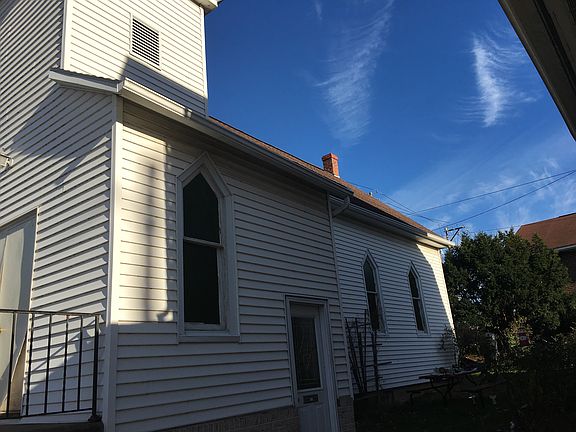 This commercially zoned property is available for sale. The first floor of the existing church has an upstairs approximately 24 feet by 42 feet with a 12 feet high ceiling. The structure was built in the early 1900’s. The roof and siding were replaced in 1994 and the basement had an interior perimeter footer drain put in 1999. Please call for additional information.