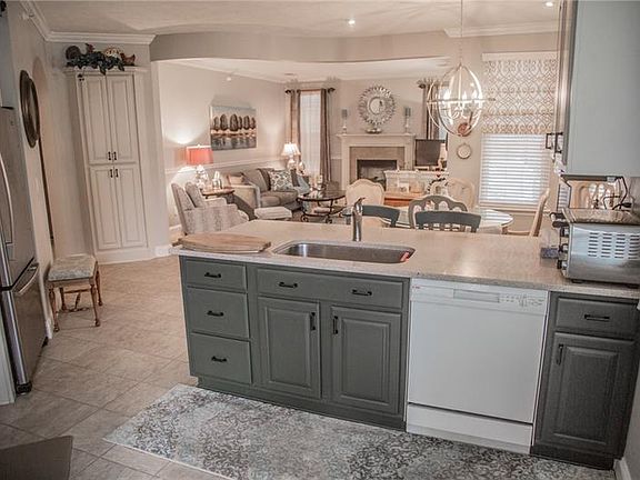Maintenance Free Living at its finest! Newly updated first floor condo in award winning Adams Pointe. Ceramic floors,Kitchen with updated 2 color cabinets, stainless appliances, back splash, and quartz counters. Door leading to the roof covered porch off KIT. LR w/ gas FP open to the KIT. MB with newly remodeled on suite bath, french doors that lead to the roof covered porch, walk-in closet. Bed 2 w/bay window, generous closet & full hall bath. New windows though out unit. Over sized laundry/mudroom off the 1 car garage with shelving, bench and w/plenty of space for your vehicle & storage. Beautiful views, custom landscaping with flowers blooming every season. Private serene setting & convenient location within the community. Enjoy the community amenities: 2 swimming pools, state of the art club house w/ BB courts, workout room, theater room, car wash & more!