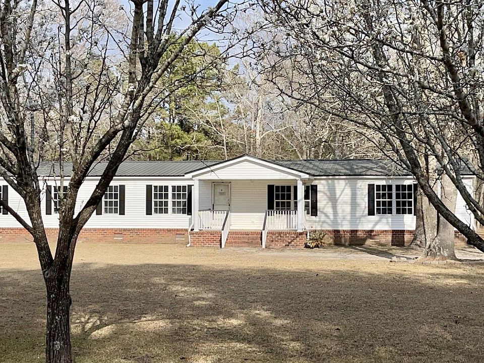 Welcome to Bonneau Beach where there is NO HOA FEES. Just minutes from Lake Moultrie and the boat ramp. This 2280 sq ft mobile home consists of 4 bedroom, 2.5 bathrooms and an Office. It is beautifully situated on a 2.25 acre lot with 1 workshop and 2 sheds in the backyard. Walk up onto your covered porch and enter the home directly into the foyer. The owner's suite is on the left side of the home directly off of the formal dining room and there are three secondary bedrooms on the right side of the home. The Den has a woodburning fireplace and sliding glass doors that lead to a screened in porch that is perfect for sitting and watching the squirrels in the backyard. This home is being sold ''AS IS' Schedule your Showing today.