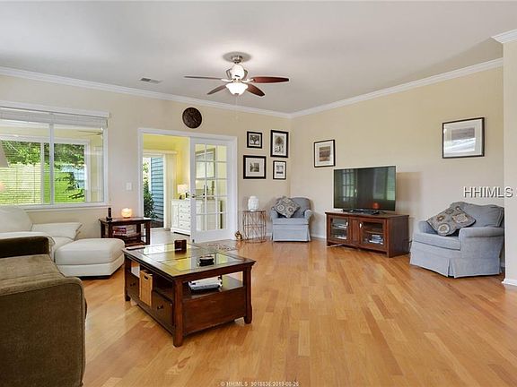 Upgraded Adirondack cottage located on a very private street. Featuring 2 Bedrooms, 2 Bathrooms, Den, Carolina Room with French doors and 2 Car Garage. New roof in 2013 and New HVAC in 2017. Gourmet kitchen with white cabinets, granite countertops, stainless steel appliances, natural gas stove/oven, tile floor & tiled backsplash. Owners' bath has upgraded custom walk in shower with granite top on vanity. Tile in the foyer. Wood floors in all the other rooms. Bay window in the owner' suite. Crown molding, ceiling fans, blinds and fresh interior paint. Attached Storm shutters $7,500. Paver patio in back.