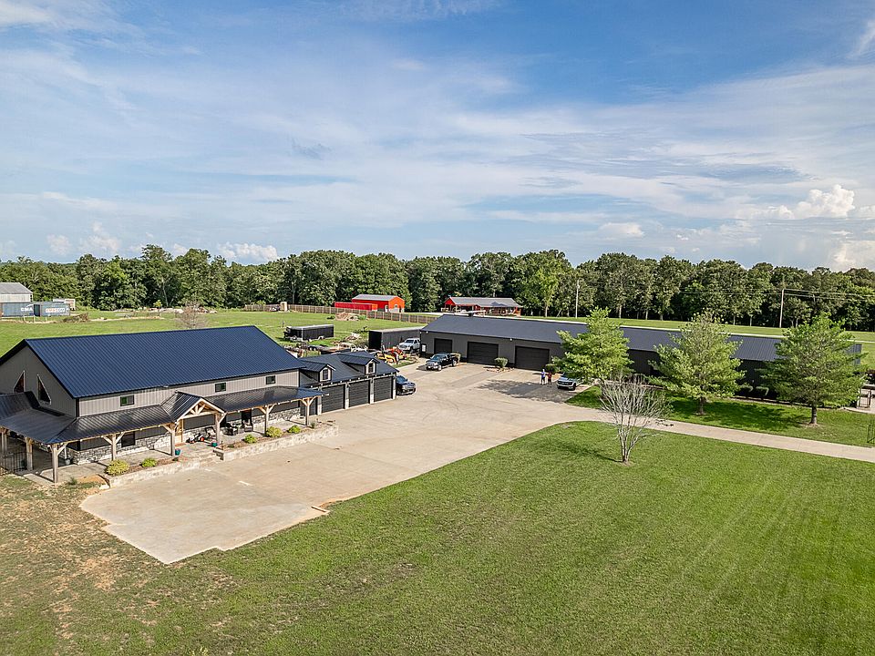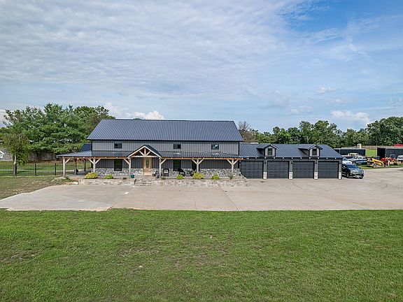One of a kind newly builit home on acreage with a huge shop, 9 separate garage spaces, a stocked pond, a pool and even access to an airstrip! Located on a prime 7.1 acre tract just off Hwy W in Ozark and just south of the Gimlin Airstrip, this amazing property welcomes you with down it's private drive with a statue of an elk normally only seen at Bass Pro. The entrance is gated and beyond that is a huge expanse of concrete drive leading to the home and shop. The house was built in 2024 and features over 4000 sq.ft. of rustic charm including an enormous great room with open kitchen and dining room, a loft family room, 4 bedrooms, and 4 baths. The construction of this home includes foam insulation, a high effeciency heat and ac system, and an overbuilt structure that will stand the Ozarks weather with no issue. Other features include solid surface flooring, stainless appliances, granite and tile countertops, and a 4 car attached garage. The shop is south of the house and is 42x180 feet with a 1080 sq.ft. apartment located inside. There are 4 separate garage doors on the north side and the hanger door on the west side of the shop. The apartment has one bed and bath with a finished space upstairs as well. It is perfect for that in-law or teen needing some space. The shop is metal with concrete floors, 220 power, and room to run a business out of or keep your collection of toys. The acreage open with a wrap-around wrought iron fence around the entire perimeter for security and privacy. The inground pool and gazebo are perfect for hot summer days with the family or friends and the kids can go fish the fully stocked pond. It is very deep and has a wood arch bridge making access across the pond easy. 5 Minutes from Ozark and 10 minutes from Hwy 65 with easy access to Branson or Springfield. Ozark schools. One of the most unique and adaptable homes you will ever find in the Ozarks!