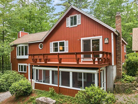 What makes a waterfront a great waterfront. How about 2 waterfront parcels in low tax Wakefield to include a wonderful lake home and waterfront lot. If you were to design the ideal lake house what would you include. Perhaps A 2 car garage complete with tons of storage area above. In the house you surround yourself with a knotty pine interior with a towering cathedral beamed ceiling. Maybe a loft bedroom taking advantage of the views as well. A First floor primary bedroom, open kitchen with a peninsula and spacious great room and large a cedar closet and family room beyond. A deck facing the lake is a given. Then you go down to the walk out lower level where you find natural slate stone floor in the main gathering space with wood stove- an indoor patio or sorts. a large family room, a second full bath. My favorite is the 20 foot screened porch to listen to the loons all night long and enjoy life on the lake every minute of the day. Storage is hard to create unless it is built that way so you have over 368sf of it here. Outside are grounds built with privacy and meandering pathways to the lake and dock. For a family compound or for investment the abutting waterfront home is available right next door plus an additional lot (see Mls 000000). So whether you wish to live in a private sanctuary or be part of a family compound, you have options here. It has been a family home for decades full of cherished memories, laughter and relaxation. Lake life is life Make it yours