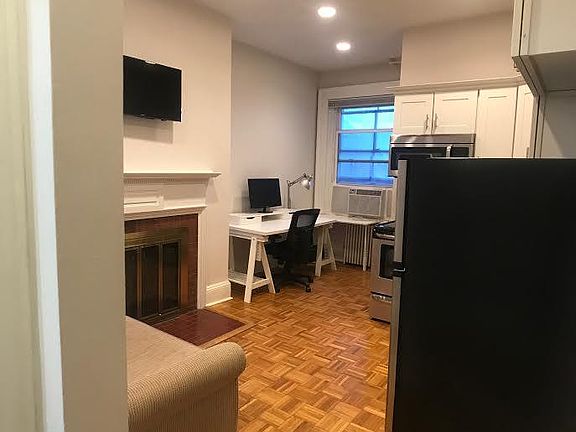 One bedroom in Back Bay. June 1. Gorgeous period building. Single occupancy. Decorative fireplace, stainless kitchen appliances, dishwasher/disposal, washer/dryer combo, microwave, high ceilings. Love seat stays with unit, is a pull out couch. Bedroom can fit a full or queen sized bed. Wall mounted TV and AC included. Hardwood floors, deep closet, marble bathroom. Heat and hot water included in the rent. No pets. Available June 1. Photos from prior tenant. Heat and hot water included in the rent. First month's rent, last month's rent, a broker fee of 1 month and $500 security deposit due upon lease signing.