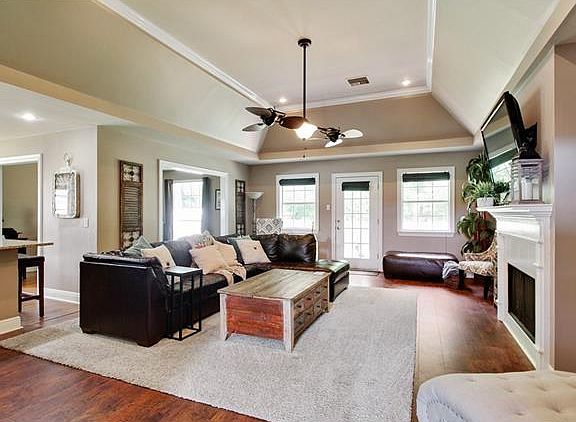 Open floor plan offers a roomy den with wood burning fireplace and unique trey ceilings. Large kitchen with plenty cabinet and counter space. Formal dining room has wood floors and can accommodate a full formal set. Well maintained with new carpet in den and hallways. Private, fenced backyard.