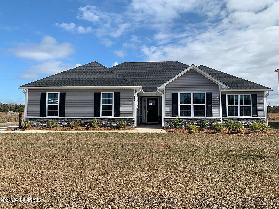 Welcome to the highly desired & popular community of Onslow Bay. Brand new construction built by Onslow County's most trusted & preferred builder, featured in Builder 100/ Top 200 Builders in the country. Onslow Bay is a hot spot, 3 miles to MCB Camp Lejeune's Piney Green gate, 14 miles to New River Air Station & minutes to area schools, shopping & dining. This beautiful neighborhood is sure to impress, complete with a clubhouse area & community pool. The Vienna 1583, 3 bedrooms & 2 bath with approx. 1583 heated square feet. The quaint but spacious foyer welcomes you into the huge 14x13 living room that is open to the kitchen. The living room features a ceiling fan and a fireplace with a custom mantel. The kitchen features staggered flat panel cabinets, a pantry, and stainless-steel appliances to include a smooth top range, dishwasher, and a built-in microwave. The grand master bedroom is approx. 12x 16 with a huge walk-in closet that is approx. 9x13. Master bath features dual vanity, separate shower and a soaker tub. Bedrooms 2 & 3 are on the opposite side of the house giving you plenty of privacy, both prewired for a ceiling fan. Out back is your open patio for all your entertaining or morning coffee. Call today! NOTE: Floor plan renderings are similar and solely representational. Measurements, elevations, and specs may vary in final construction. Limited selections for buyer to choose. Call L/A to verify.