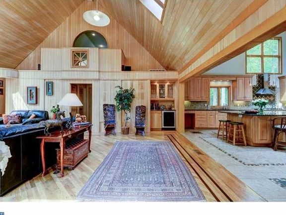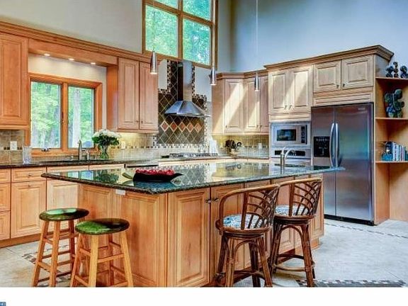 Timeless elegance and tranquil surroundings come together with unique design and impeccable craftsmanship to provide a "get-away-from-it-all" feel at this 4.2 acre property that backs onto 26.5 acres of deeded green land in a nature preserve. The deceptively understated exterior offers a 5000 plus sq. ft. home with 5 bedrooms, 4.5 Bathrooms, Stunning Kitchen and Great Room addition, office, library, and large living and dining rooms. Designed by Hillier Architect, soaring vaulted cathedral ceilings, 22 skylights, and custom windows provide stunning light filled vista views. A two storey marble foyer leads through a columned archway to the 29x18 Living room that features two separate entertainment areas and a marble fireplace. Latest accent lights and a built in sound system provide an art gallery like feel. Hard wood floors throughout compliment the open floor plan. Detailed wood work, French doors and large windows are highlights of the large Formal Dining Room that adjoins a Library with built in book cases, brick fireplace and access to the Wrap Around Deck. Skylights and oversized custom windows punctuate the 21x27 Great Room that flows seamlessly into the 21x18 Chef's Kitchen with custom cabinetry, granite countertops, stainless steel appliances and a stunning mega sized 10X6 granite center island with custom lighting. The kitchen also features tucked away pantries and a built in breakfast nook. The Master Bedroom suite has floor to ceiling windows, his and her walk in California closets, Pillars and a step down sitting area opening to a private deck. The completely redone Master Bathroom comes with marble floors, elegant wainscoting, an oversized Jacuzzi, his and her designer vanities, and a custom travertine stall shower. A powder room, additional full bath, laundry area and 3-car garages complete the first floor. The second floor features three bedrooms, two full baths, a separate lounging area and a fully equipped office with built in cabinets. Three stairways provide complete and discrete access to the kitchen, living and entertaining areas. A 27x 27 ft. loft overlooks the great room. It currently serves as office and game room, but can be used as an additional bedroom. High efficiency Carrier HVAC systems (2006) and newer Roof. Just minutes from downtown Princeton's fabled University, shops, restaurants, theater, train station and schools, this home truly combines traditional Princeton charm with chalet-like living!