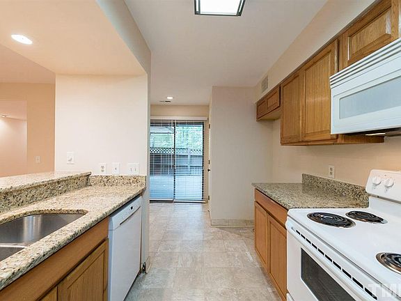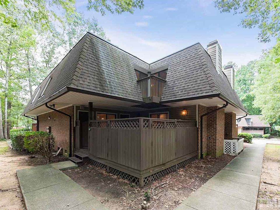 This Chapel Hill two-story condo offers hardwood flooring, a fireplace, granite kitchen countertops, a walk-in kitchen pantry, and an uncovered deck.