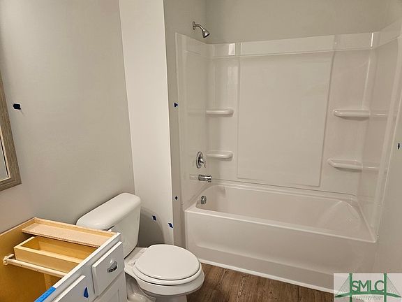 Savannah's most trusted local builder is proud to offer our Dayton plan. This 5 BR/3 BA home is open with tons of natural light and gorgeous upgrades! On the main floor living spaces and in laundry room and bathrooms you'll find wood-look vinyl flooring, while the kitchen boasts 42" tall cabs with plenty of storage space and an amazing pantry and center kitchen island. All kitchen appliances are included in stainless steel - even the fridge! A guest bedroom next to a full bathroom is on the first floor, as well as a study/office and ample living space. Upstairs you'll find four bedrooms, two full bathrooms, a loft, and plenty of storage/closet space. Primary bathroom features separate shower & garden tub as well as two sinks in a quartz top vanity. Full sod & sprinkler in yard. Pictures, features, and selections shown are for illustration purposes and may vary from the home built. All builder incentives applied