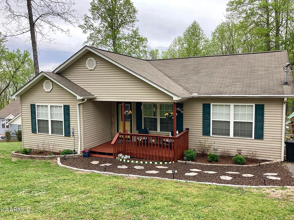 This beautiful one level range style home offer 3 bedrooms and 2 baths with open floor plan and split bedrooms. Luxury vinyl floors in living room/kitchen. Farmhouse sink, and newer appliances in kitchen, Large back deck for entertaining and a huge fenced in back yard for the pets and kids. Stand up room in crawl space that can be used for extra storage. This home is only 3 minutes from Norris lake and public boat access. There is a seasonal lake view from back yard and a trail at the end of the cul de sac to the lake.