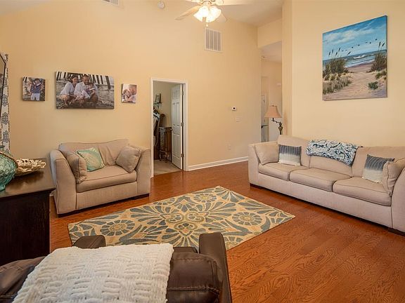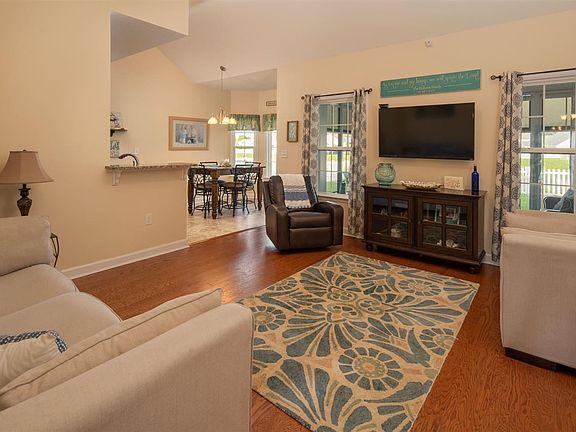 Welcome to Jackson Estate, a highly desired community! This 3 bedroom, 2 bath meticulously cared for home is a must see, cozy and bright with a pond view! The home features charming bay window, additional attic storage, large driveway, and the garage has extra cab along with a safe. The living room provides sufficient space for comfortable furniture, features vaulted ceilings, and hard wood flooring. The kitchen is well designed with a breakfast bar, stainless steel appliances, beautiful back splash, granite countertops, soft close drawers and tons of storage! The master with its own master bath coupled with a glass door shower and garden tub, along a walk in closest that includes extra shelving. With the other two very sizable bedrooms, there is the easy breeze four season room that is just perfect to enjoy your morning coffee, reading your favorite book, or just enjoy the sunset over the pond view. The home has a fenced in back yard, and curb appeal! River rock landscaping bedding professionally installed stamped concrete edging. This home is not just ideal, but it comes with solar panels making it energy efficient and a money saver! The community of Jackson Estates is conveniently located near shopping, world class medical offices and hospitals, restaurants, schools, and only four miles to the beach.