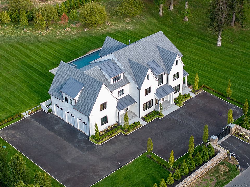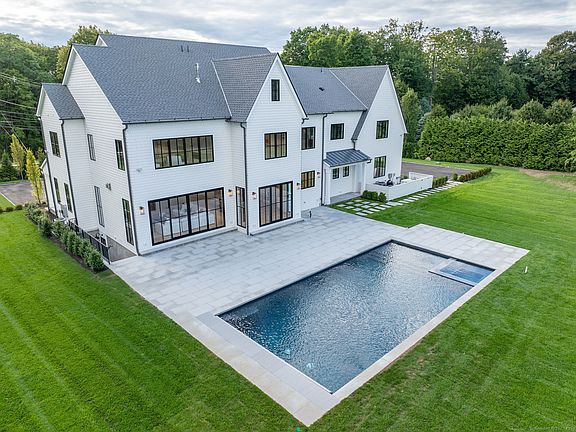 Convenience & sophisticated style is what you get with this ultra-chic 6 bedroom, 8.5 bathroom masterpiece perfectly sited on a picturesque 2 flat acres with 20x40 pool and private gate entry. Built with the best finishes In mind, you'll enjoy 10ft ceilings, flexible open floor plan, private office with French doors, formal rooms that flow seamlessly from one to another, and the ultimate dream kitchen featuring a gorgeous island with 2" countertop/ waterfall edge, chefs appliances, two dishwashers, custom walk-in pantry, wet bar, dramatic windowed breakfast area that opens to the family room overlooking the fabulous terrace and pool with spa. Exquisite millwork, wide plank floors, custom staircases, and cubie built-ins shows meticulous attention to detail. Absolutely spectacular primary bedroom with fireplace, vaulted ceilings, huge dual closets and spa inspired bathroom that will take your breath away featuring a 8ft x 4ft curbless walk-in shower, soaking tub, 10ft floating vanity, and heated floors. (All bedrooms have en-suite bathrooms). Gorgeous mudroom with 2nd laundry and elevator that travels from bedroom level to the finished basement. This home has all the features for today's discerning buyer including Smart Home technology, Crestron lighting system, state of the art mechanical room, full house generator and setting the new standard in energy efficiency. Just Minutes to New Canaan's shopping and dining, Train Station, schools, fields, and Merritt Pkwy.