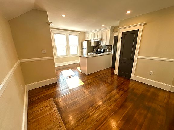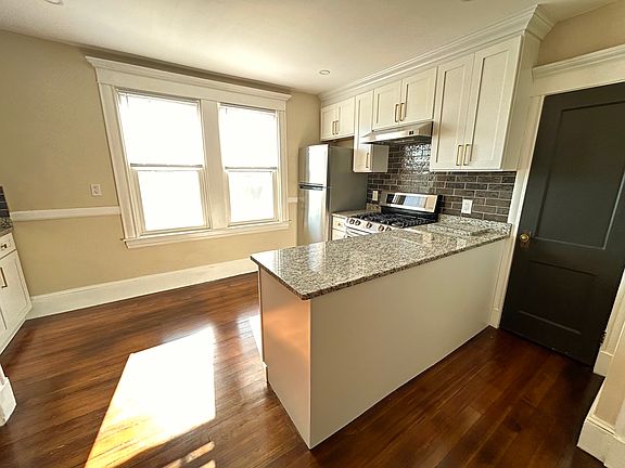 Large 3 bedroom, 1 bath, unit for rent. High ceilings, beautiful architecture and original hardwood throughout, fully updated kitchen and bathroom with granite countertops and new appliances. Quiet neighborhood with a yard. Located half a mile to South Coast Rails new station. Walking distance to Abraham Lincoln Elementary School, Charter School, All Saints Catholic School and close to the High School. Tenant to pay for all utilities. 1 assigned parking space and plenty of off street parking. Approved pets accepted for an additional fee. Located on the 3rd floor. Unit will be available for move in 12/1. No smoking. No prior evictions. Minimum credit score of 650 required, applicants must make a minimum of 3x the rent, proof of income, references and credit screening will be run. First, last and security due at signing. Tenant at will. No viewings/tours without a completed rental application.