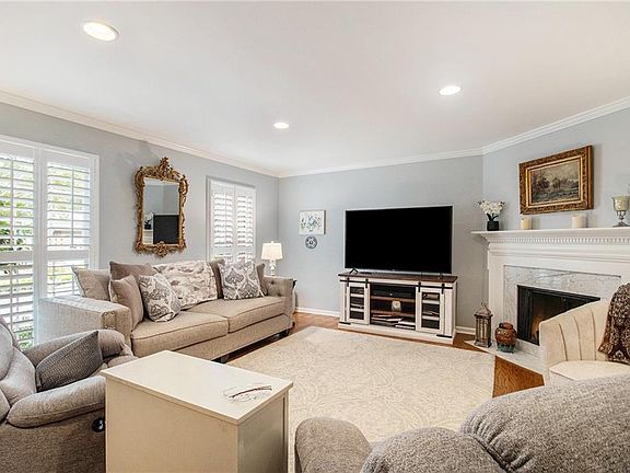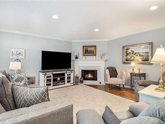 Experience refined living in this beautifully appointed three-level brick townhome that seamlessly blends timeless craftsmanship with modern luxury. The chef’s kitchen is a true centerpiece, featuring stainless steel appliances, granite countertops, a breakfast bar, and an inviting breakfast/keeping room—perfect for casual dining or morning coffee. The formal dining room opens to a private deck overlooking a tranquil greenbelt, ideal for entertaining or relaxing outdoors. A butler’s pantry/wine bar with a Carrera marble countertop and custom shelving adds a touch of sophistication. The fireside great room offers warmth and ambiance with recessed lighting, remote-controlled gas logs, and elegant finishes throughout. An inviting entry foyer sets the tone for the home’s graceful flow and style. Upstairs, the oversized primary suite provides a serene retreat with a California walk-in closet and a spa-inspired bath featuring a clawfoot soaking tub, double vanity, and separate shower. Two additional spacious bedrooms share an updated hall bath, offering comfort and versatility for family or guests. The lower level is ideal for a home office, media room, or man cave, with additional climate-controlled storage for convenience. The drive-under garage boasts an epoxy-coated floor for durability and a polished look. Residents will enjoy access to a serene community pool and appreciate the home’s prime location—just minutes from shopping, fine dining, parks, and top-rated schools. This elegant townhome offers the perfect combination of style, function, and location.