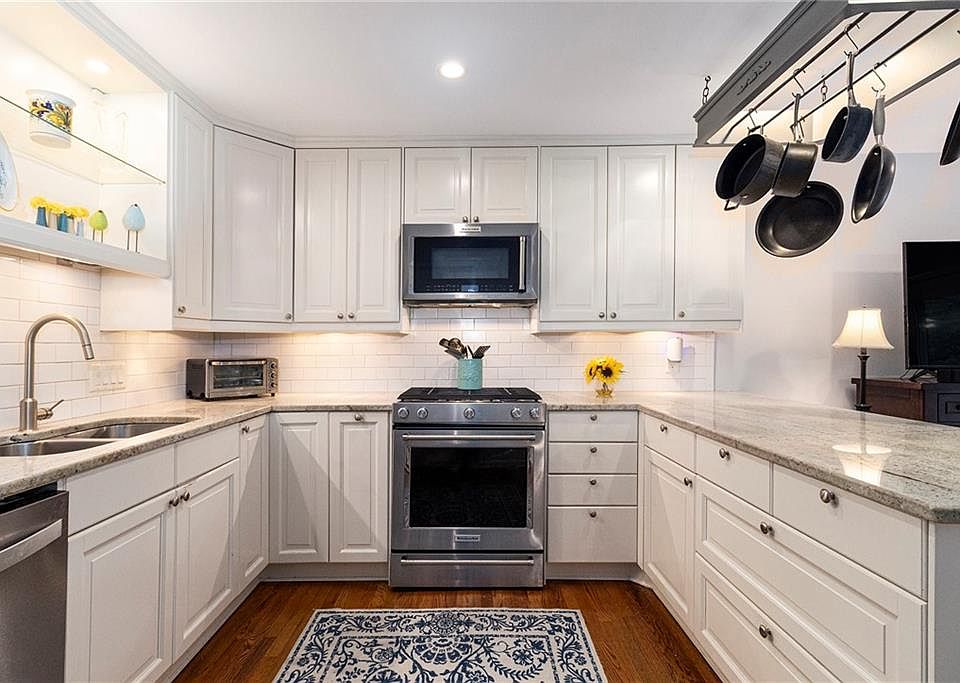 - Features: Breakfast Bar, Breakfast Room, Cabinets White, Pantry, Stone Counters